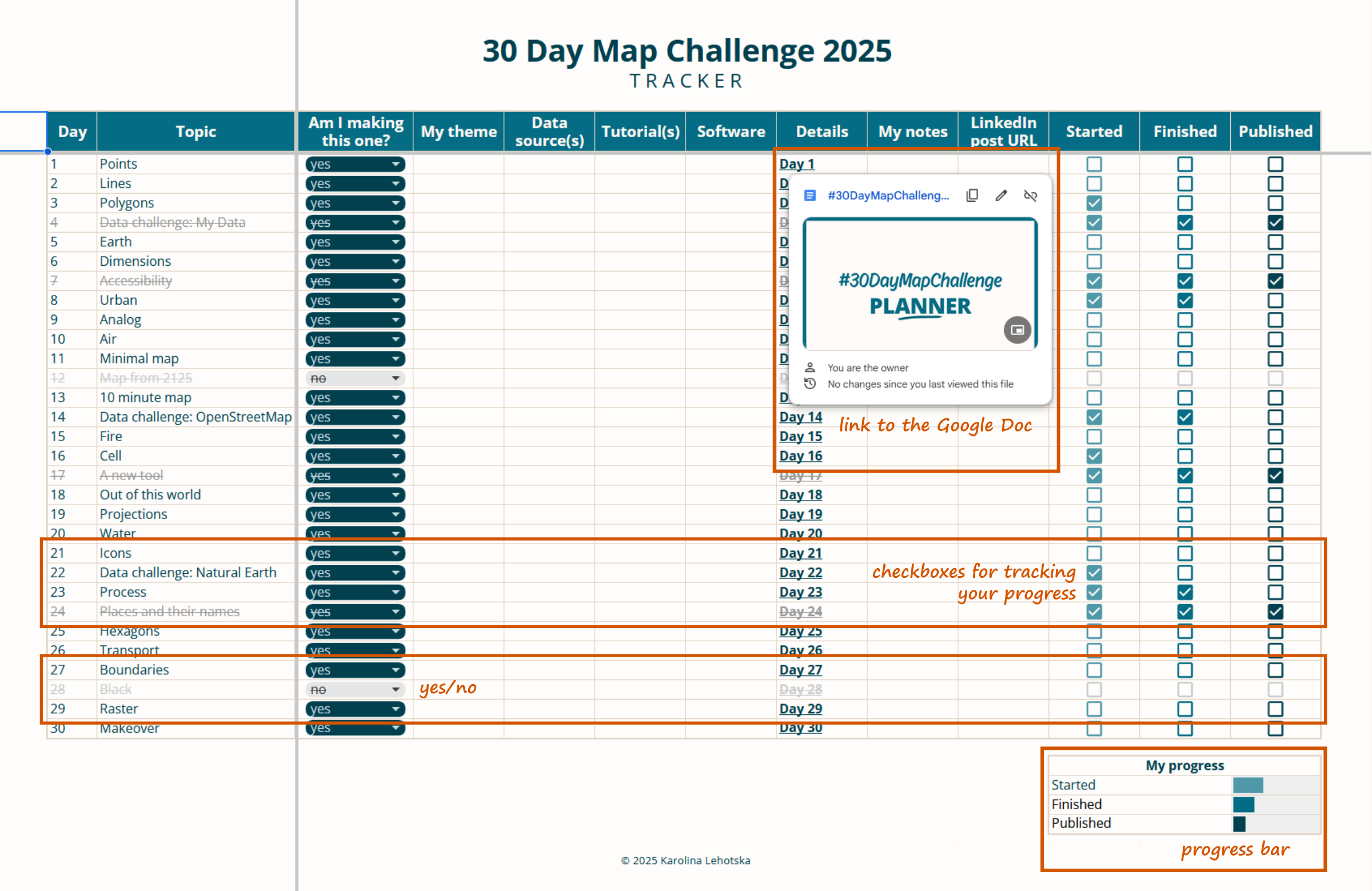 👉 Pro tip: Use this tracker as the foundation for your GIS portfolio or personal brand — it’s more than just a challenge; it’s a career boost.
